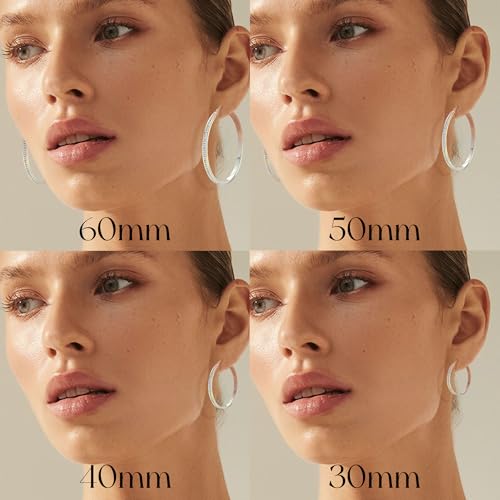 PABBEU 925 Sterling Silver Hoop Earrings for Women Sparkly Large Rhinestone Hoop Earrings Big Sterling Silver Diamond Hoops earring Hypoallergenic Cubic Zirconia Hoop Earring for Women 30/40/50/60mm 4