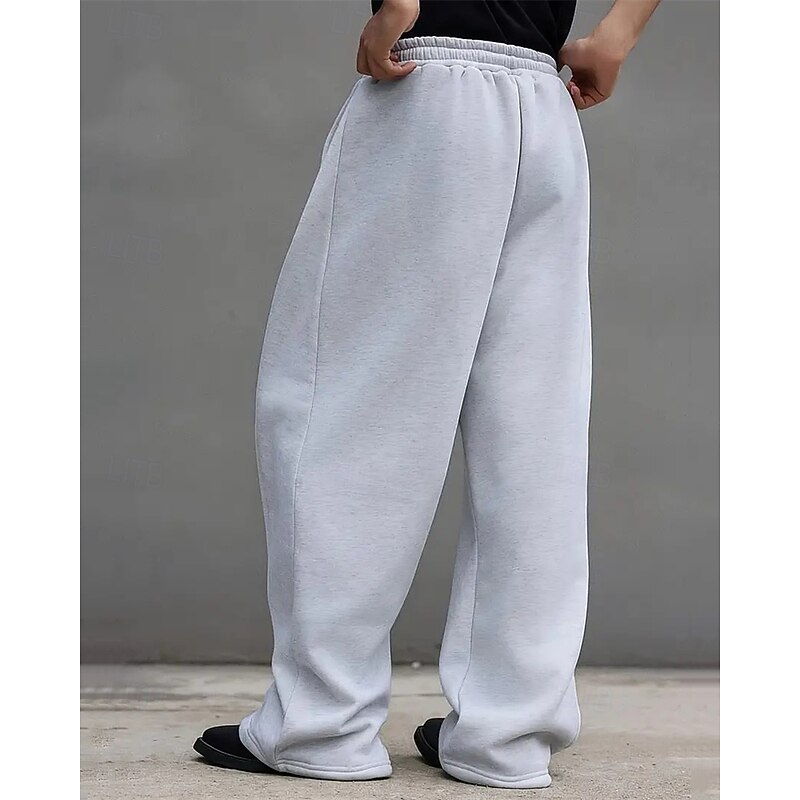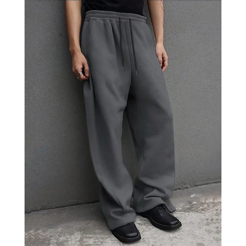 HOT ! Men's Sweatpants Wide Leg Sweatpants Trousers Drawstring Pocket Elastic Waist Plain Comfort Sports Outdoor Daily Fashion Casual Black Light Grey Micro-elastic