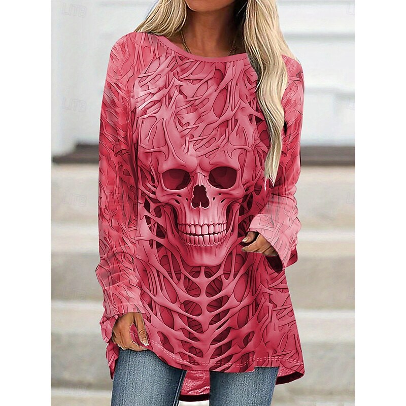 Halloween Women's T Shirt Skulls Graphic Vintage Stylish Casual Long Sleeve Crew Neck Long Tops Daily Print Black Gray Spring Fall 16