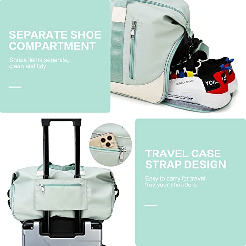 Sports Duffel Bags for Women and Men Portable gym bag with Wet Pocket & Separate Shoes Compartment Short Travel Organizer Tote Shoulder Bag, Green