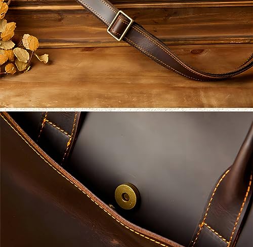 Closure type: No-closureHandcrafted to perfection, this Crazy Horse leather briefcase exudes an air of timeless rugged elegance. Its authentic leather texture, coupled with its 15x11x2.7 inch dimensions, offers a perfect blend of style and functionality.Our versatile genuine leather briefcase can be transformed from a handbag into a shoulder or crossbody bag in seconds! It’s more than just a bag; it’s a lifestyle accessory that caters to your needs.This is a bag for all occasions. Whether you’re stepping into a business meeting, or just casually strutting down the street, this bag will rock your look, effortlessly fitting into any setting.Never worry about running out of space again. Our bag features spacious compartments to store all your essentials, including a compartment tailored to safeguard your laptop.The fine craftsmanship is evident in every stitch; meticulous attention to detail ensures this bag isn’t just contemporary but reliable too. Our genuine leather briefcase isn’t just a purchase, it’s a long-term investment in style. Perfect for everyday use. supreme materials and excellent craftsmanship ensure long-lasting durability.