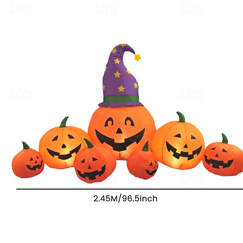 1 Pc 2.45M with witch hat shining 7 pumpkin inflatable models Halloween indoor and outdoor party decoration atmosphere lights US/AU/UK/EU Plug 5