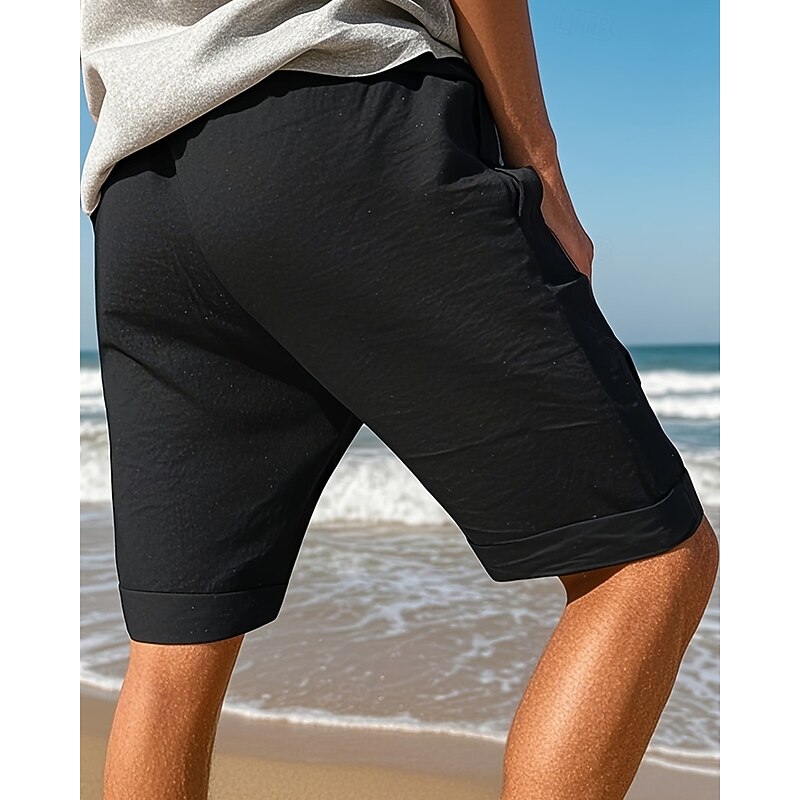 HOT ! Men's Shorts Linen Shorts Summer Shorts Beach Shorts Drawstring Pocket Elastic Waist Plain Comfort Breathable Short Vacation Holiday Beach Hawaiian Boho Black White