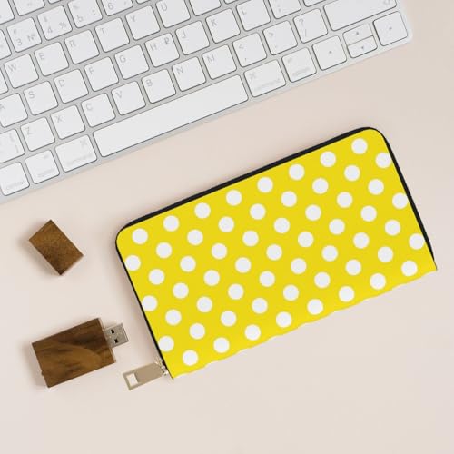 HOT ! Leather Thin Slim Wallets for Women & Men - Yellow Polka Dot Print (d) Card Wallet Holder with Zipper