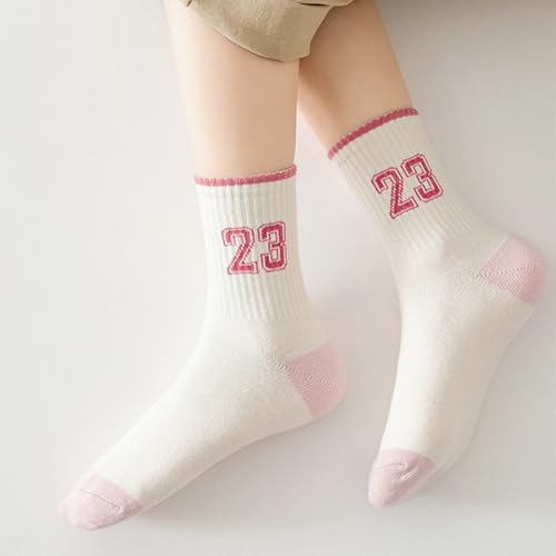 HOT ! 5 Pairs Crew Socks for Women Ankle Women Cotton Socks Cute Pink Hearts Design Novelty Aesthetic Size L & XL