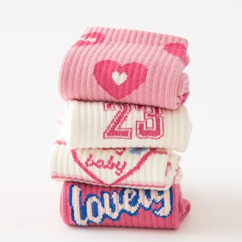 5 Pairs Crew Socks for Women Ankle Women Cotton Socks Cute Pink Hearts Design Novelty Aesthetic Size L & XL 4