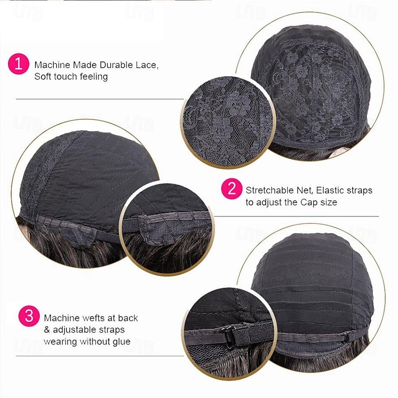 More information about Human Hair Wig Short Natural Straight Pixie Cut Natural Black Adjustable Natural Hairline For Black Women Machine Made Capless Brazilian Hair Women's Natural Black #1B 6 inch Daily Wear Party