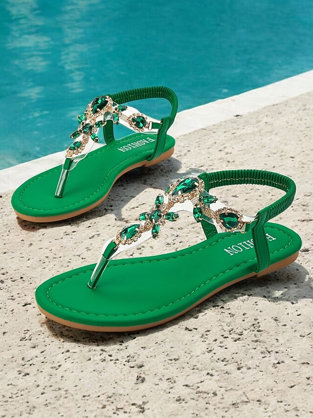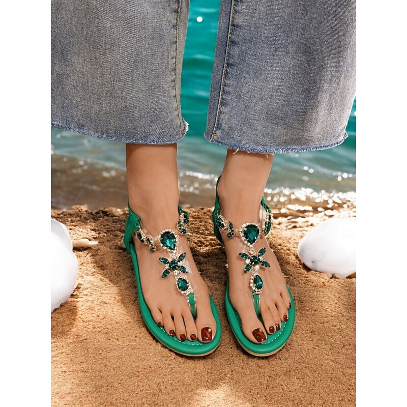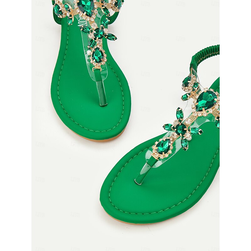 This Women's Green Rhinestone Embellished T-Strap Sandals with Elastic Ankle Strap – Elegant Summer Footwear for Beach, Parties, or Casual Wear combines elegant design with practical functionality. Every detail has been carefully considered to ensure you get the leading possible experience. The first-class construction means this product will serve you well for years to come.