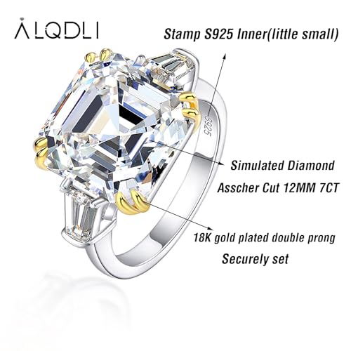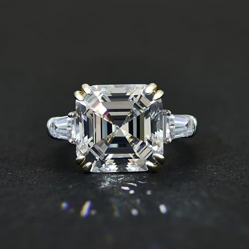 HOT ! Sterling Silver Engagement Ring for Women,Asscher Cut 12MM 7CT Simulated Diamond 5A Cubic Zirconia Wedding Promise Ring Gifts for Her