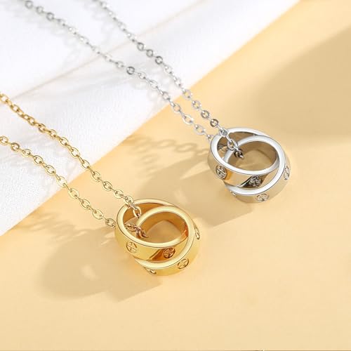adore Necklace, Interlocking Circle Necklace, Dainty Gold Pendant Necklace for Women,Fashion Friendship Necklace, Stocking Stuffers for Women Valentines Mothers Day Christmas Gifts