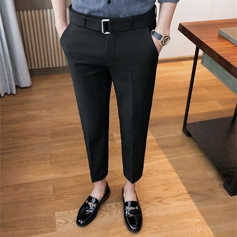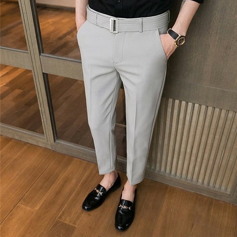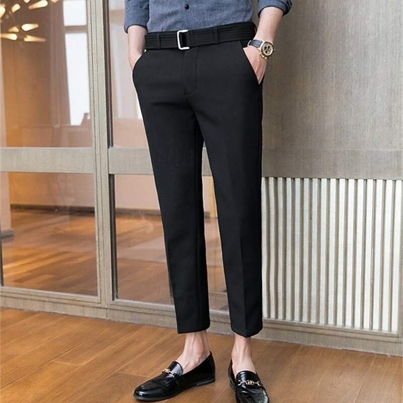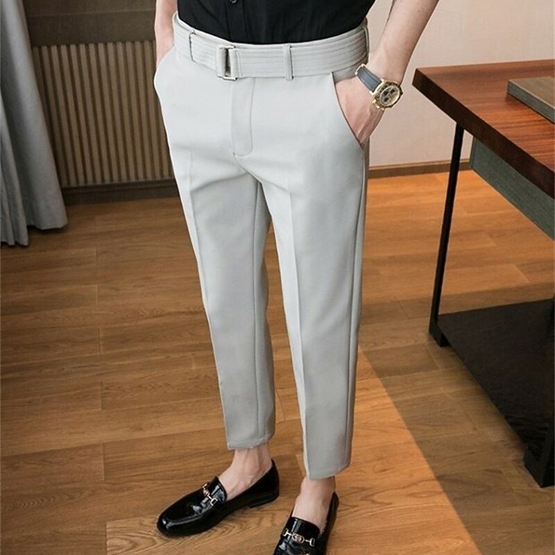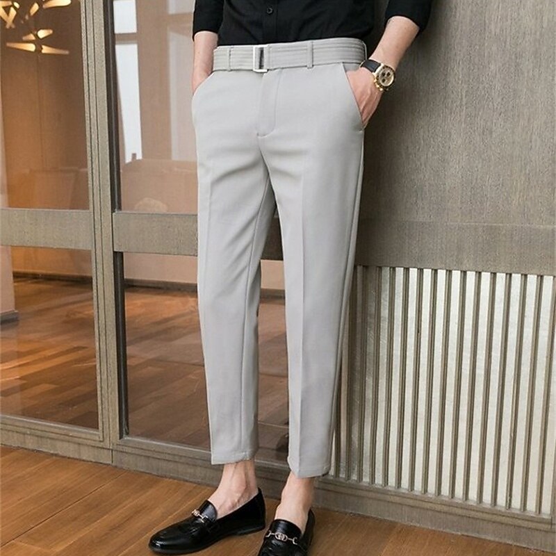 HOT ! Men's Graduation Dress Pants Trousers Chinos Buttons Pocket Plain Comfort Formal Party Work Fashion Classic Style Black Light Grey Micro-elastic
