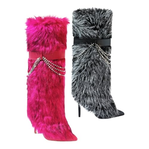 HOT ! Liliana Women Knee High Pointed Toe Stiletto heel fluffy fur boots