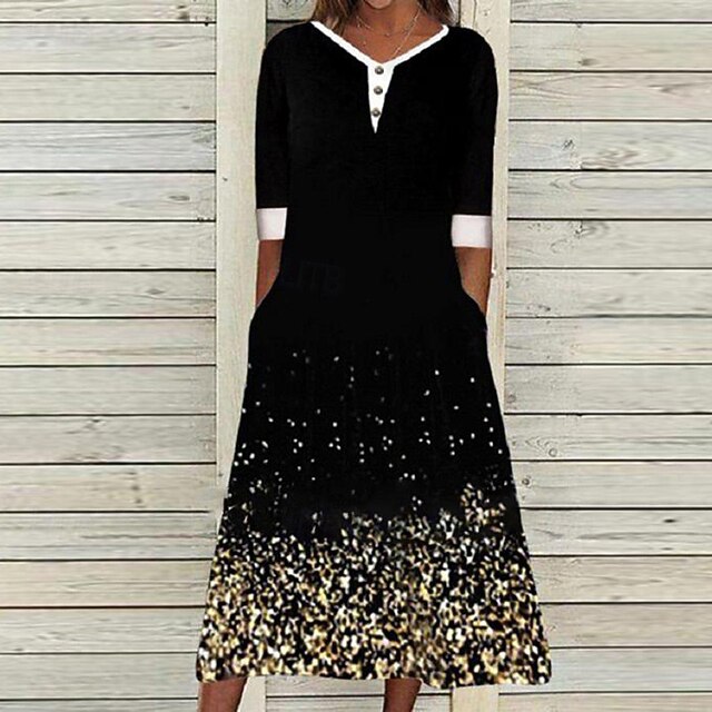 More information about Women's Midi Dress Black Dress Cocktail Dress Formal Dress Print Dress Modern Outdoor Going out Weekend Regular Fit Color Gradient 3/4 Length Sleeve V Neck Black And White Black Spring Fall