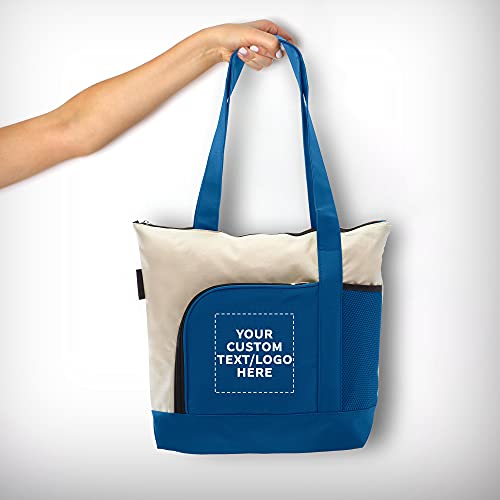More information about DISCOUNT PROMOS 12 Zipper Polyester Tote Bags Set - Customizable Text, Logo - Two-tone, Zipper Closure, Pen Loop - Blue