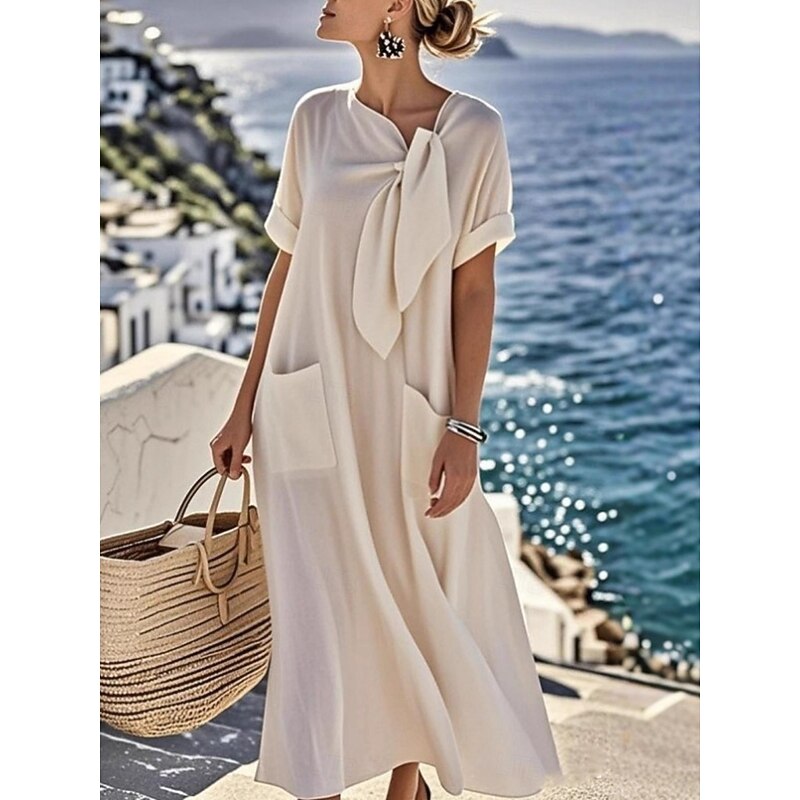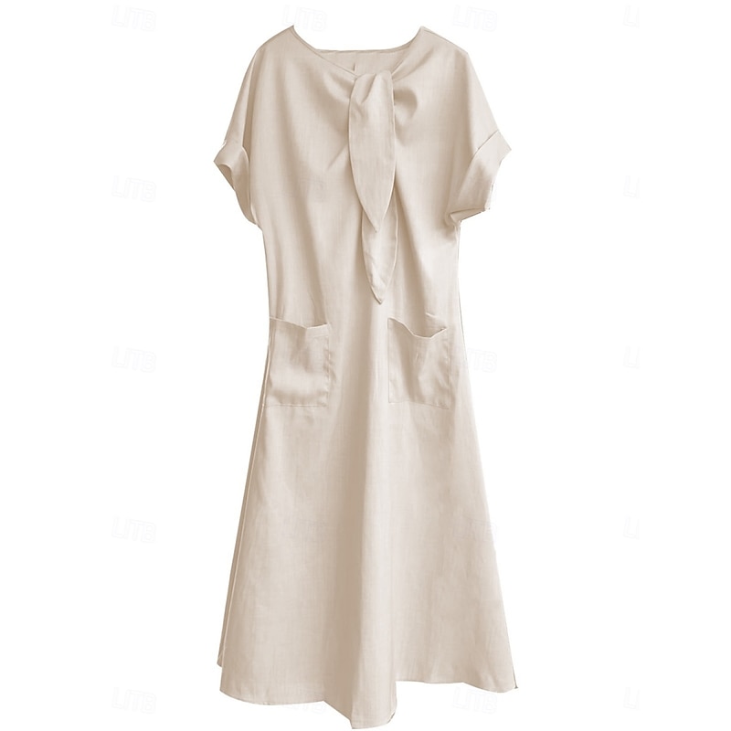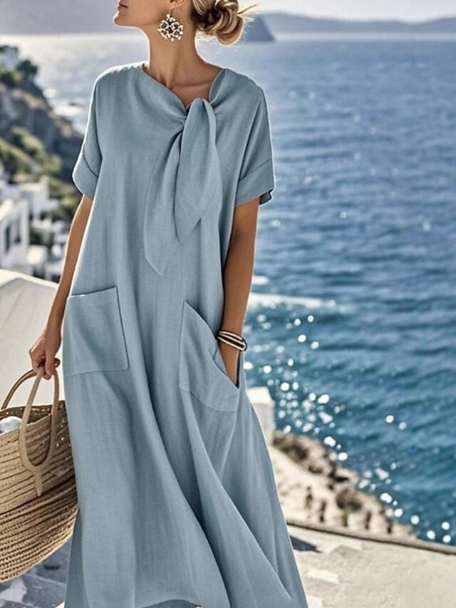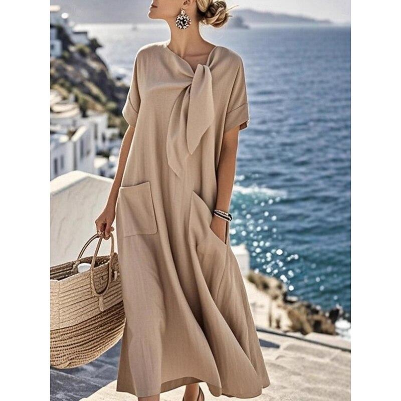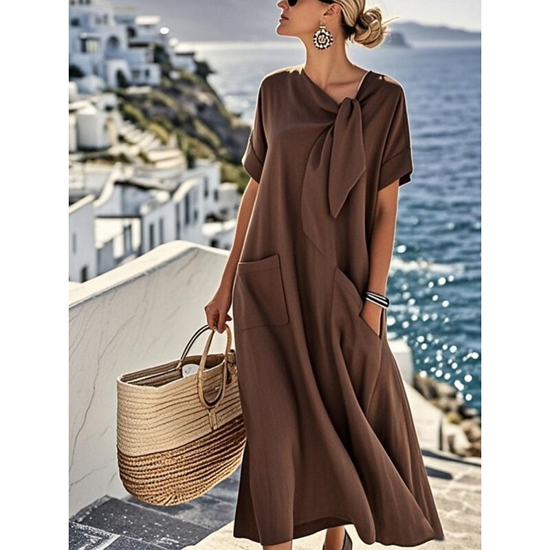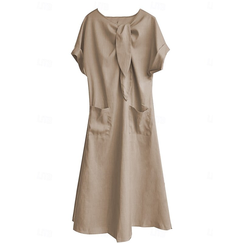 More information about Women's Midi Dress A Line Dress Casual Daily Loose Fit Plain Short Sleeve Notched Neck Blue Brown Army Green Apricot Summer