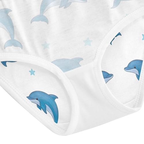 Playful Blue Dolphins Stars White Girls Underwear Toddlers 2t Cotton Panties for Girl Personalized Kids Undies Briefs 5