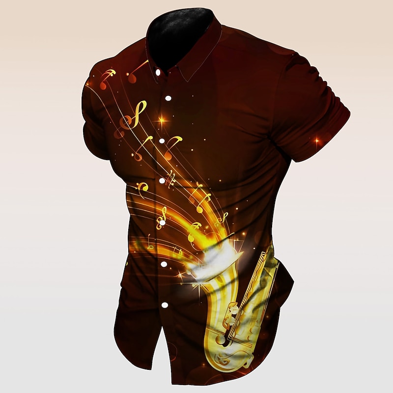 More information about Men's Boardmasters Music Notes Shirt Button Up Shirt Short Sleeve Fashion Streetwear Designer Outdoor Street Daily Summer Spring Turndown Print Button-Down Black White Yellow Red Purple