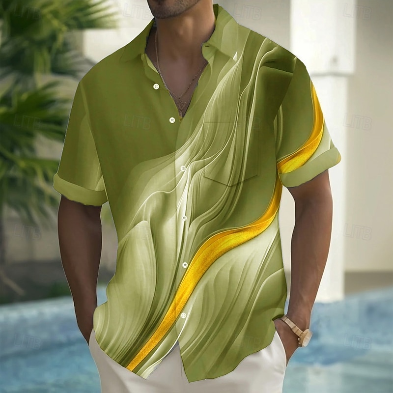 Men's Gradient Waves Shirt Summer Shirt Button Up Shirt Short Sleeve Fashion Casual Outdoor Vacation Dailywear Summer Spring Turndown 3D Print Collared Shirts Front One Pocket Blue Purple Green Khaki 10
