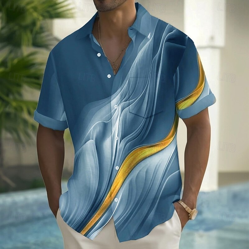 More information about Men's Gradient Waves Shirt Summer Shirt Button Up Shirt Short Sleeve Fashion Casual Outdoor Vacation Dailywear Summer Spring Turndown 3D Print Collared Shirts Front One Pocket Blue Purple Green Khaki