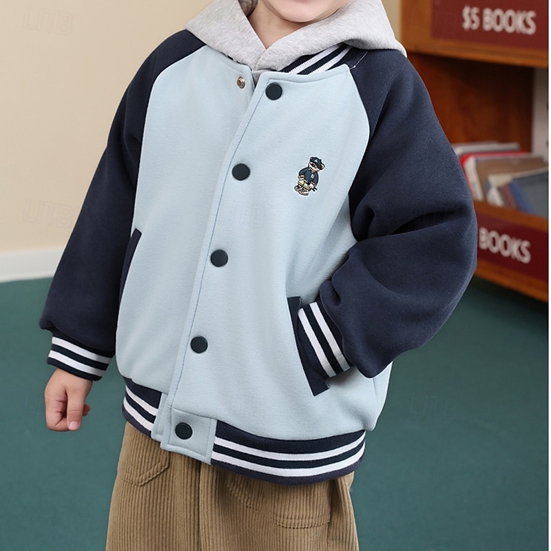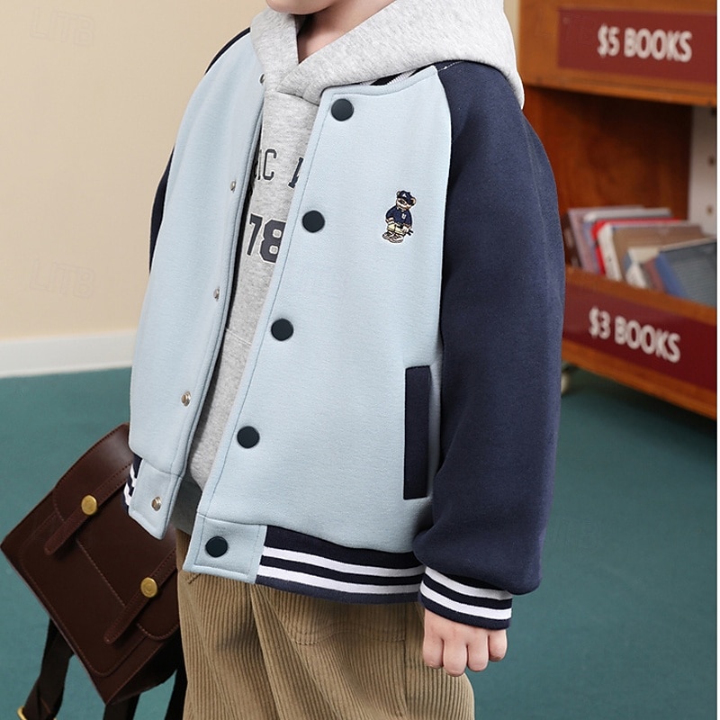 More information about Kids Unisex Baseball Jackets Outerwear Color Block Long Sleeve Comfort Buttons Soft Coat Outdoor Cotton Fashion Daily Blue Sky Blue Spring Fall 4 years+