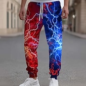 More information about Men's Optical Illusion Lightning Sweatpants Joggers Trousers Mid Waist Drawstring Elastic Waist Casual Jogging Streetwear Workout Athletic Sweatpants with Pockets Spring Fall 3D Print Red Blue