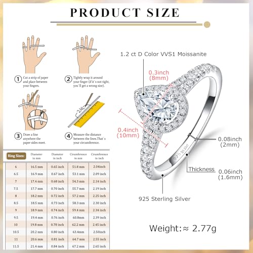 • Functional Gorgeous Moissanite Ring : simple calssic design make you can wear it every day,or as engagement ring, wedding ring, anniversary rings, promise rings for your lover, wife.