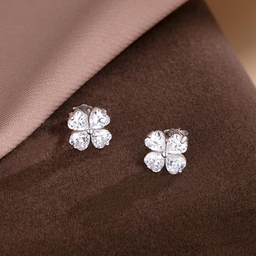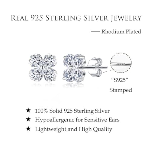 Reffeer Solid 925 Sterling Silver Flower Clover Earrings Studs for Women Teen Girls CZ Flower Stud Earrings 4