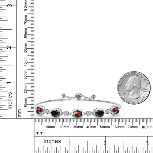 Gem Stone King 925 Sterling Silver Red Garnet and Black Sapphire and Moissanite Tennis Bracelet For Women | 5.20 Cttw | Gemstone January Birthstone | Oval Checkerboard 7X5MM | Fully Adjustable 10 Inch 4