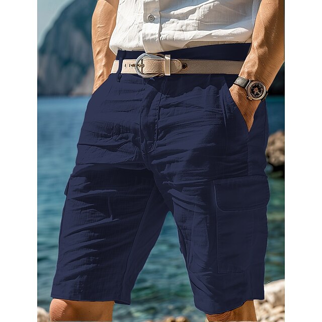 $22.99 - Men's Cargo Shorts Shorts Linen Shorts Summer Shorts Beach Shorts Multi Pocket Straight Leg Plain Comfort Breathable Knee Length Casual Daily Holiday Fashion Designer White Navy Blue 2025. Shop for cheap Holiday online? Buy at lightinthebox.com on sale today!