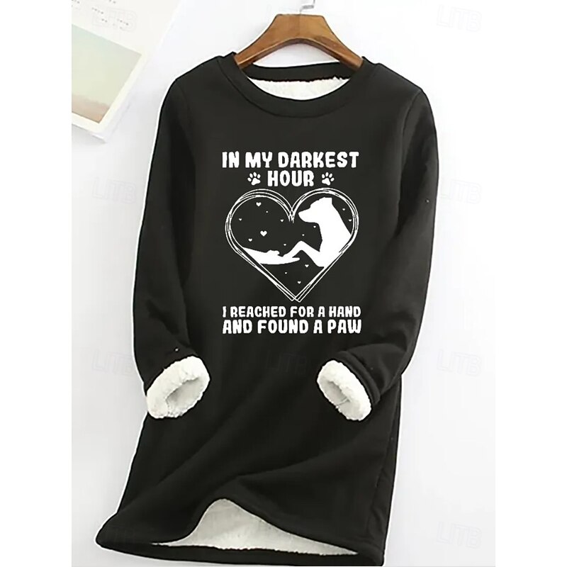Highlights - Stay warm and cozy with fleece lining - Long length for added coverage - Eye-catching letter pattern - Stylish print design - Classic crew neckline