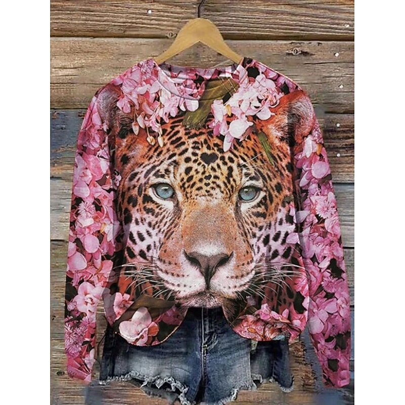 Women's Pullover Sweatshirt Graphic Animal Warm Active Vintage Long Sleeve Crew Neck Round Neck Regular Tops Street Dailywear Casual Print Black Yellow Pink Dark Pink Blue Spring Fall Winter 12