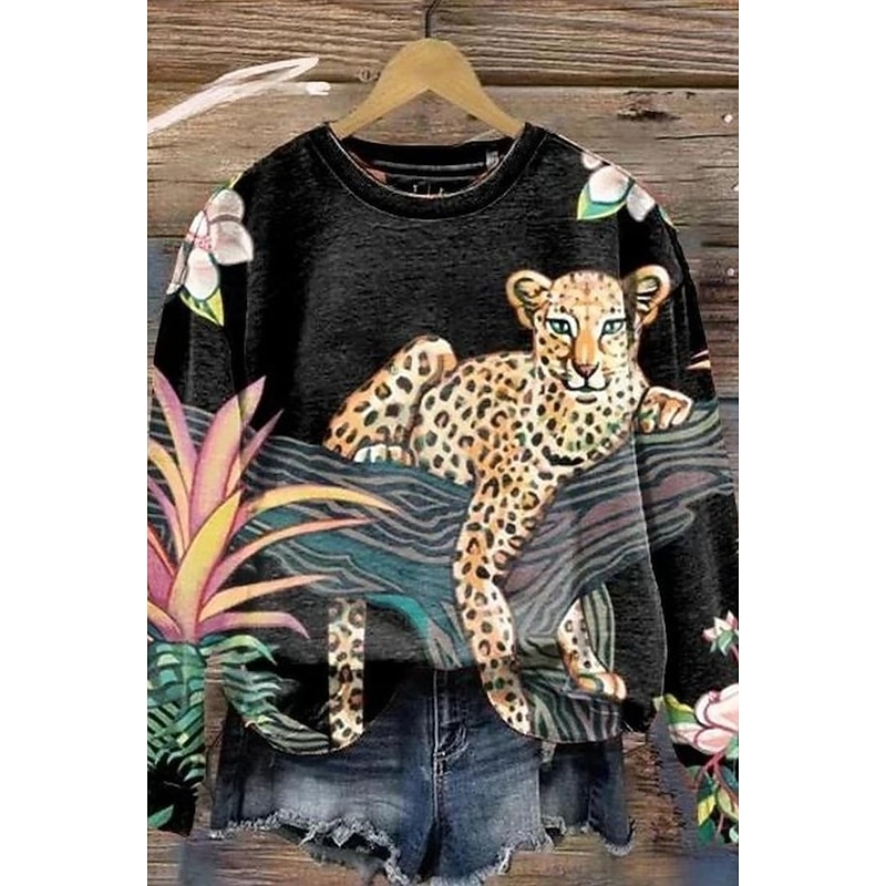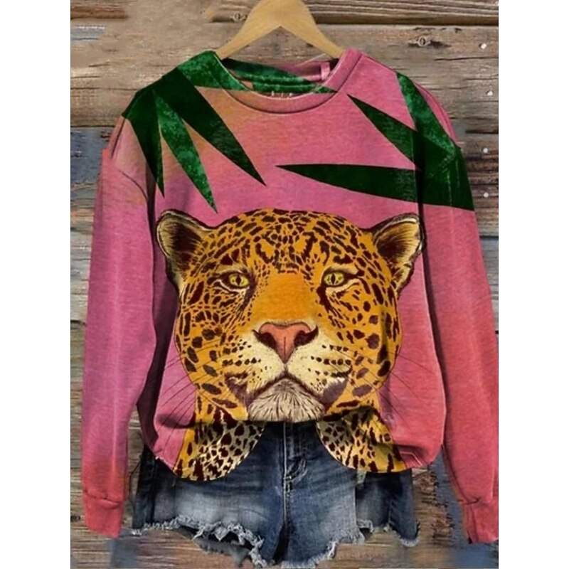 HOT ! Women's Pullover Sweatshirt Graphic Animal Warm Active Vintage Long Sleeve Crew Neck Round Neck Regular Tops Street Dailywear Casual Print Black Yellow Pink Dark Pink Blue Spring Fall Winter