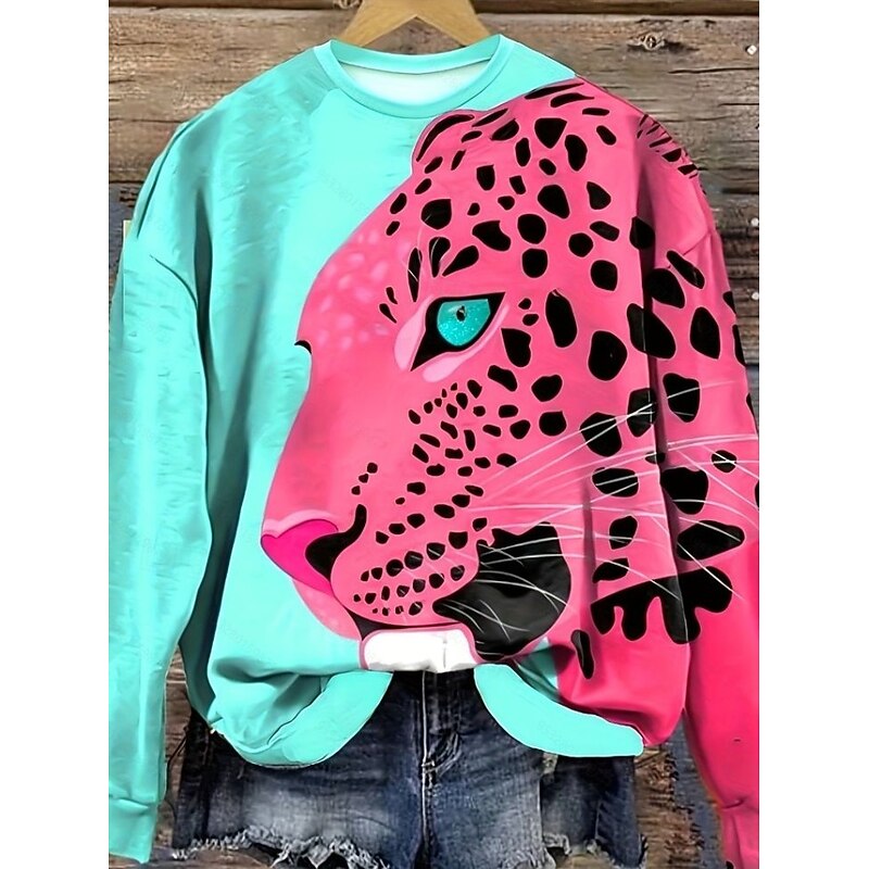 Women's Pullover Sweatshirt Graphic Animal Warm Active Vintage Long Sleeve Crew Neck Round Neck Regular Tops Street Dailywear Casual Print Black Yellow Pink Dark Pink Blue Spring Fall Winter 13