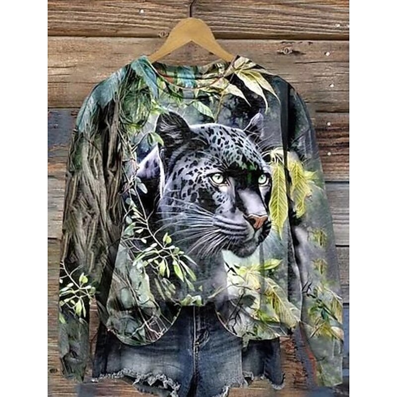 More information about Women's Pullover Sweatshirt Graphic Animal Warm Active Vintage Long Sleeve Crew Neck Round Neck Regular Tops Street Dailywear Casual Print Black Yellow Pink Dark Pink Blue Spring Fall Winter