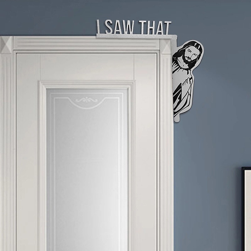 Left Right Wooden Door I Saw That Jesus Head Funny Home Decor Frame Ornament  Door Frame Decoration 11