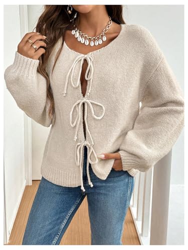 Verdusa Women's Bow Tie Front Drop Shoulder Long Sleeve Knit Cardigan Sweaters 1