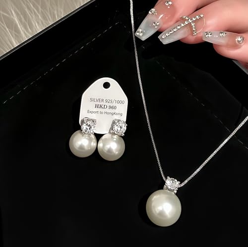 HOT ! Pearl Earrings Necklace Set Silver Pearl Stud Earrings for Women Minimalist Pearl Earring Necklace Trendy Hypoallergenic Wedding Earrings for Women