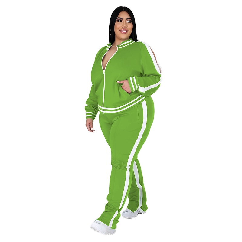 Available in a broad range of sizes from L to 5XL, ensuring a comfortable fit for various body types. The tracksuit comes in several vibrant colors, including black, orange, yellow, green, blue, fuchsia, and light green.