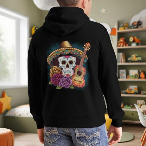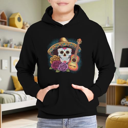 HOT ! Kids Cute Cinco De Mayo Mexican Skull Boys Girls Lightweight Kangaroo Pocket Fleece Hoodies