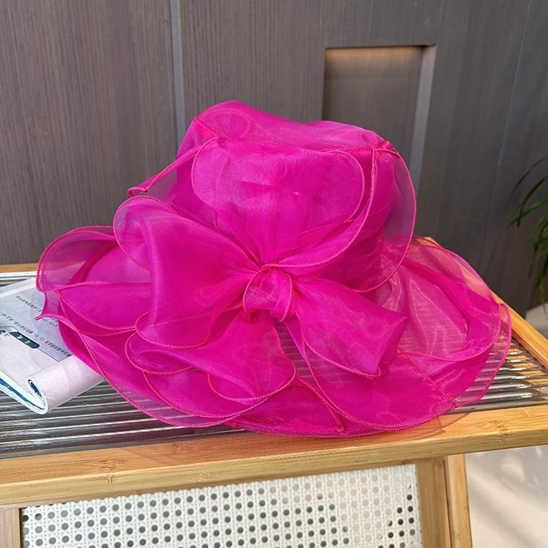 More information about Fascinators Hats Headwear Organza Bucket Hat Floppy Hat Sun Hat Casual Holiday Elegant Vintage With Flower Pure Color Headpiece Headwear