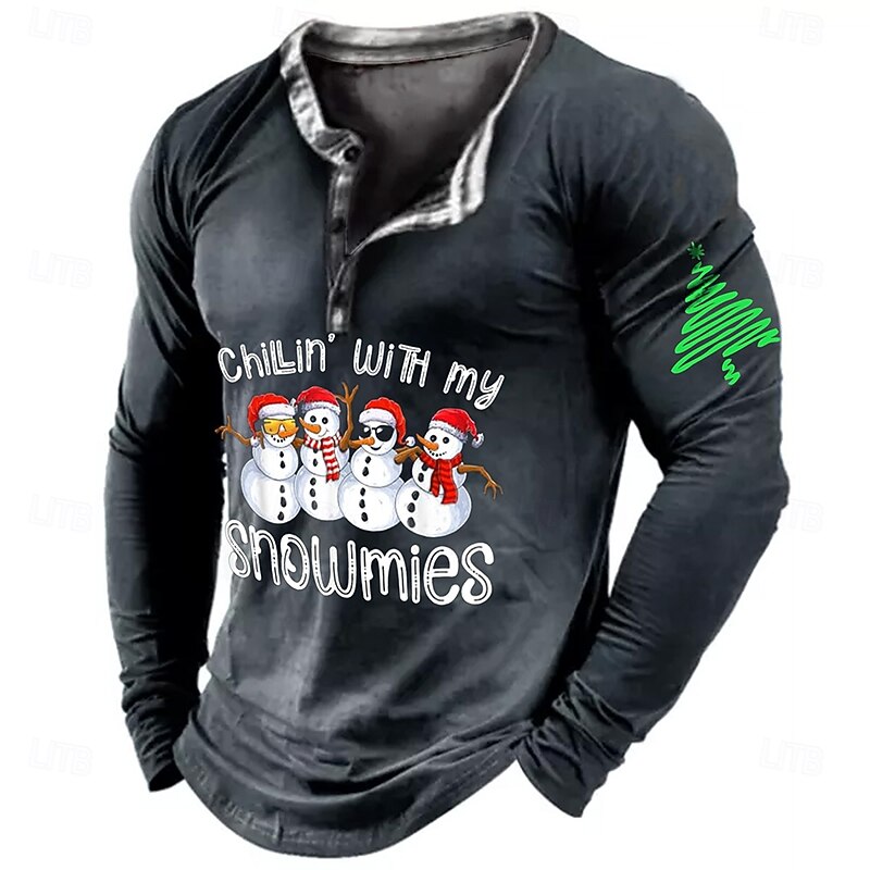 More information about Christmas Men's Christmas Scene Henley T Shirt Snowman Letter Letters Letter Print Sports Fashion Daily 3D Printing Henley Long Sleeve Street Casual Daily Red Dark Blue Gray Long Sleeve Henley Collar