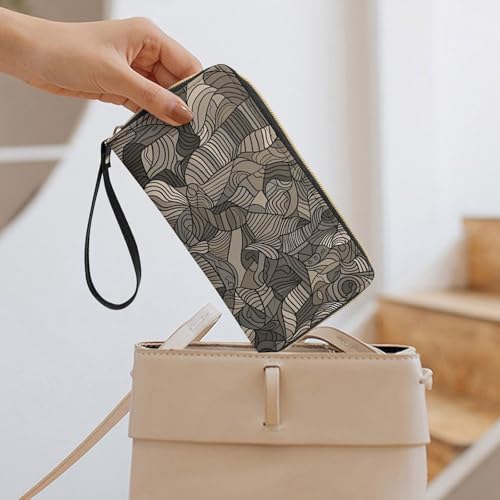 Beige Block Pattern Leather Wallet Smooth Zip Around Clutch Wristlet Travel Long Soft Purse for Women 5