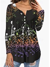 More information about Women's Shirt Blouse Flower Modern Casual Long Sleeve V Neck Regular Tops Daily Going out Print Black Fall