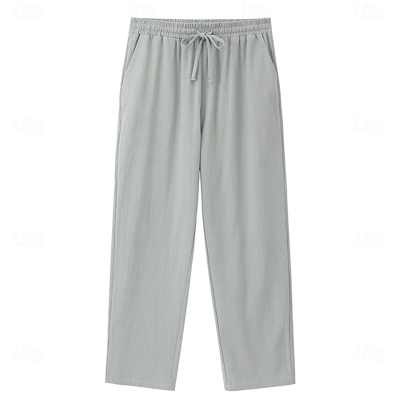 Men's Linen Pants Trousers Beach Pants Pocket Drawstring Plain Comfort Breathable Daily Stylish Hip Hop Black White Micro-elastic 9