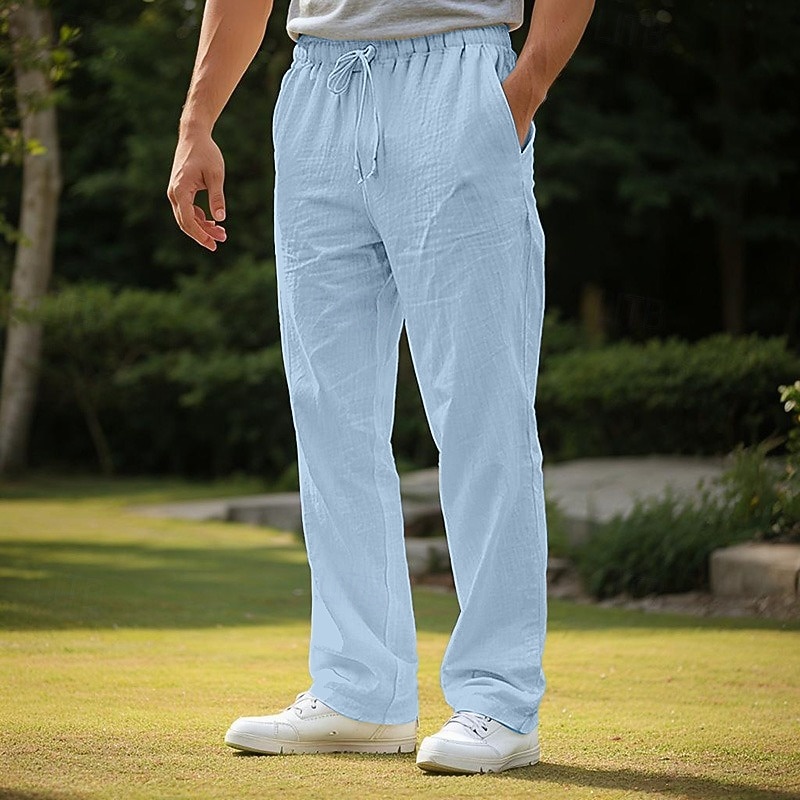 More information about Men's Linen Pants Trousers Beach Pants Pocket Drawstring Plain Comfort Breathable Daily Stylish Hip Hop Black White Micro-elastic