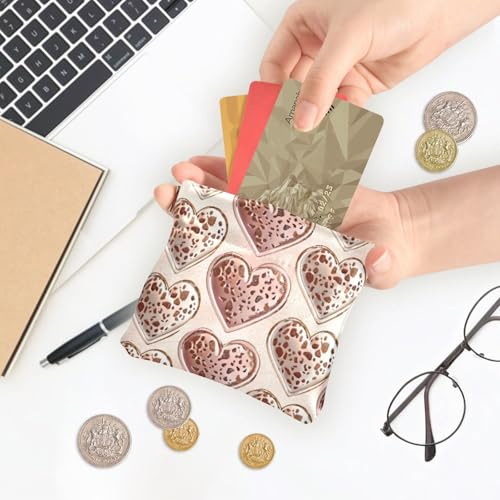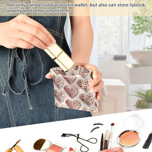 Leopard Print Hearts Coin Purse Leather Pouch Change Purse, Squeeze Coin Pouch for Cards, Keys & Lipsticks, Unisex 5