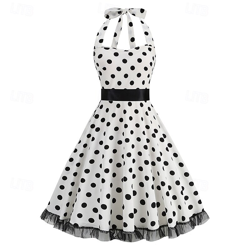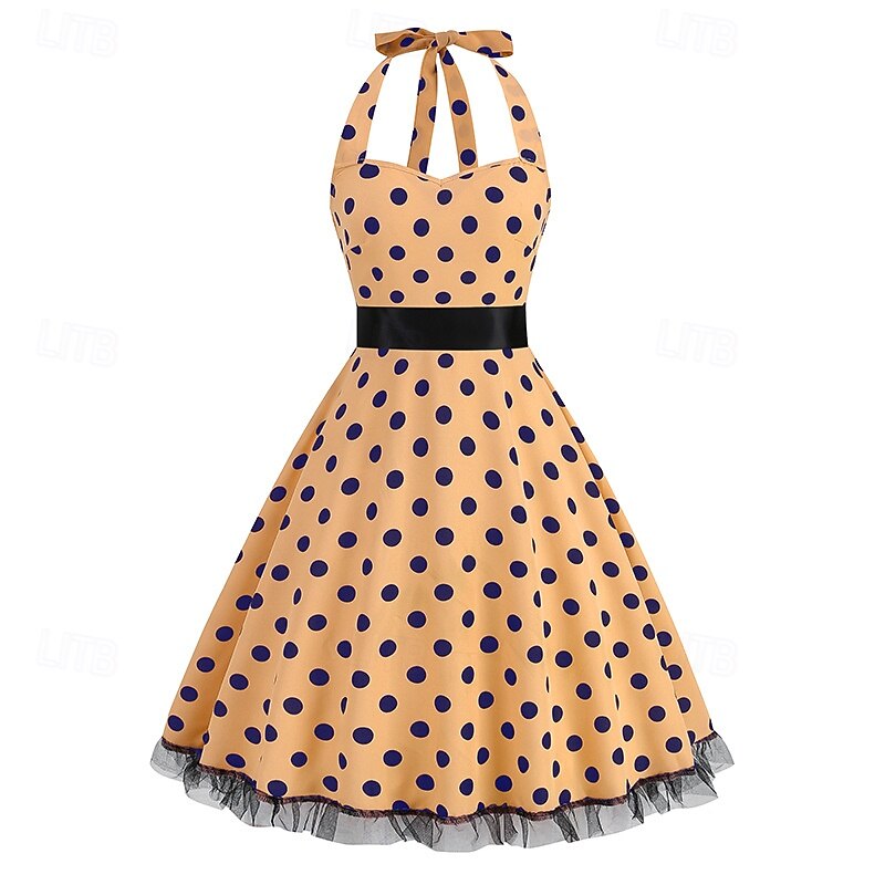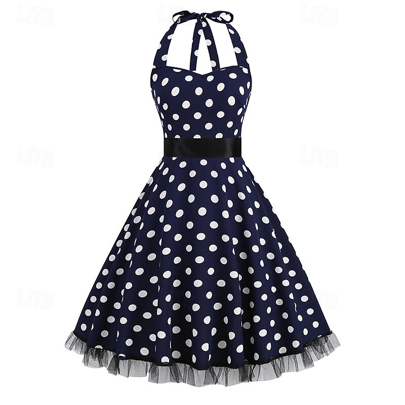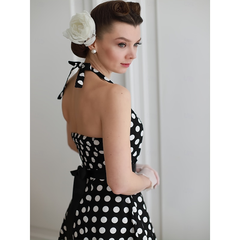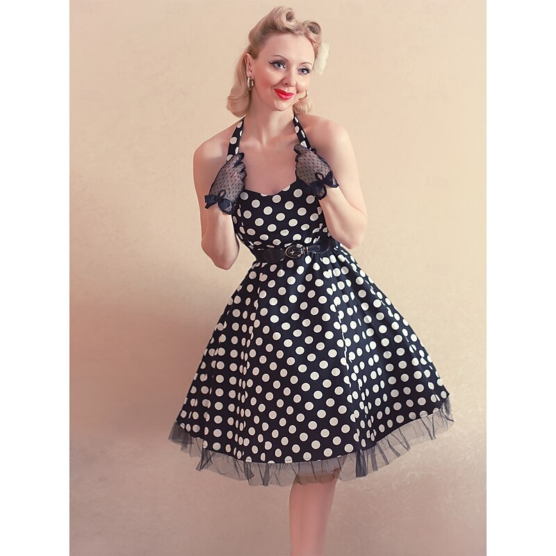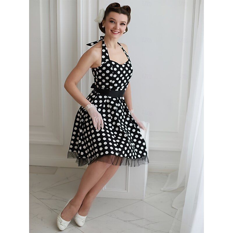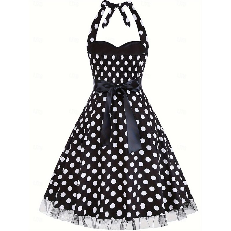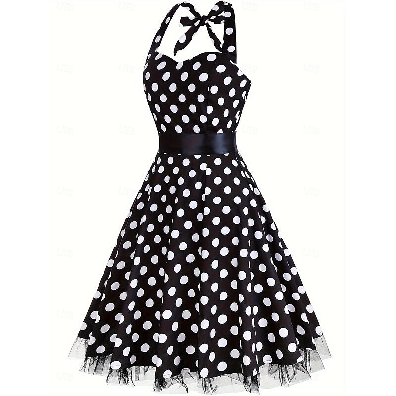 More information about Vintage 1950s Rockabilly Knee Length Flapper Dress Dress A Line Dress Polka Dot Fit & Flare Halter Neck Fancy Dress Women's Halloween Carnival Valentine's Day Party Casual Tea Party Adults' Dress