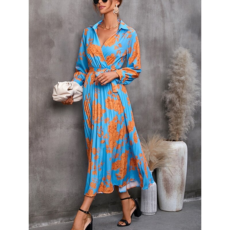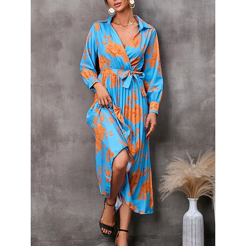 More information about Women's Maxi Dress Casual Dress Wrap Dress A Line Dress Stylish Casual Vacation Daily Regular Fit Floral Long Sleeve V Neck Yellow Blue Summer