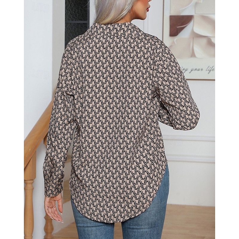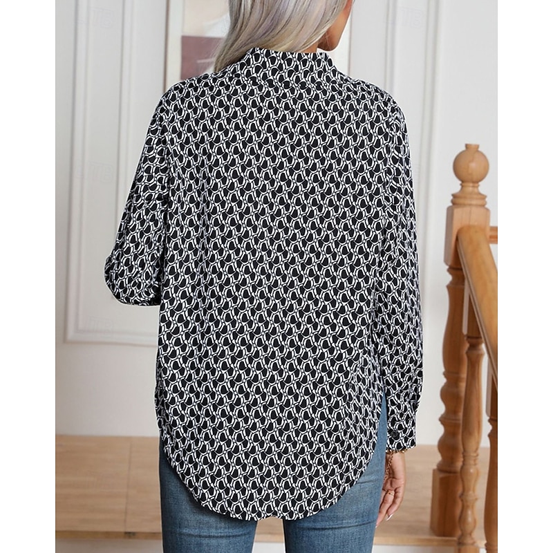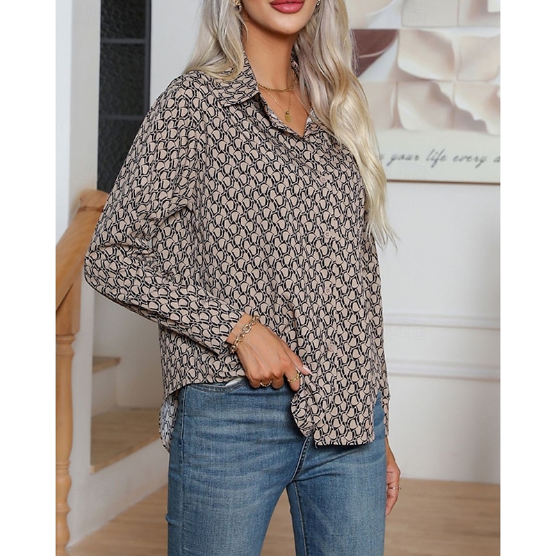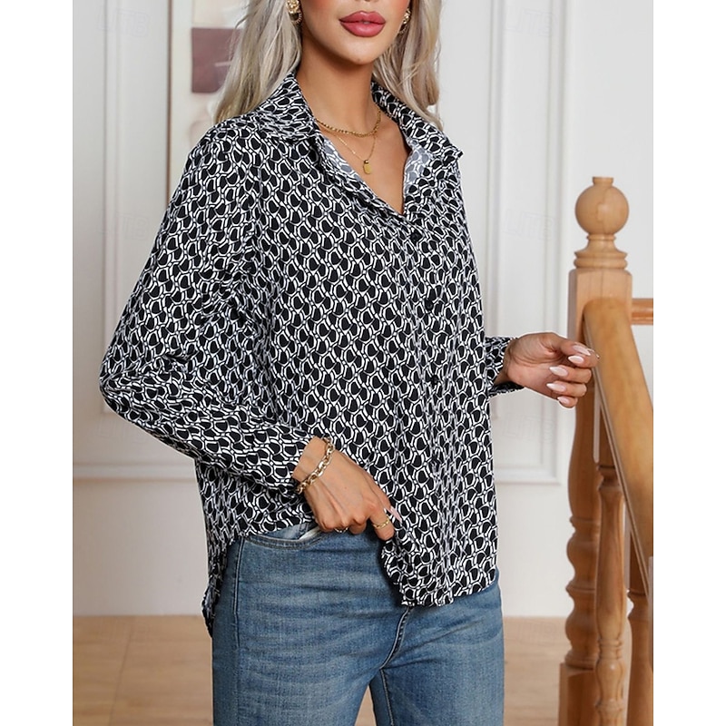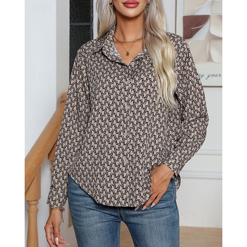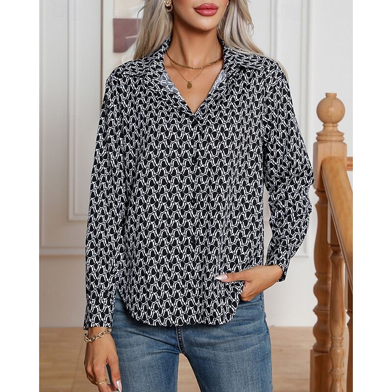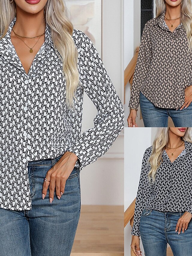 More information about Women's Shirt Geometric Daily Stylish Basic Long Sleeve Shirt Collar Regular Tops Work Daily Holiday Buttons Black White Khaki Spring Fall