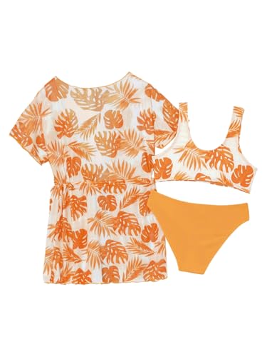 Why Choose Kids Girls 3Pcs Tropical Print Straps Swim Tops and Bottom with Dress Beach Cover Up Bathing Suit?